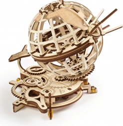 Het stijlvolle houten model UGEARS Globe verenigt traditioneel materiaal en mechanische beweging tot een unieke bouwervaring. Dankzij het slimme tandwielsysteem en de hoogwaardig uitgesneden multiplex onderdelen functioneert het model na montage soepel en wordt het een originele decoratie én leermiddel.