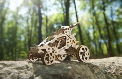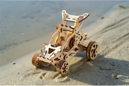De UGEARS mini buggy is een leuke en slimme mechanische bouwset van natuurlijk hout die traditioneel materiaal met modern ingenieurswerk combineert. Dankzij de nauwkeurig uitgesneden onderdelen past alles perfect in elkaar en na montage toont hij een vloeiende beweging van wielen en tandwielen.
