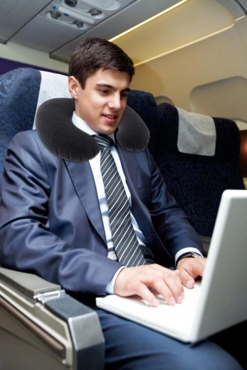 De U-vorm van het kussen houdt het hoofd stabiel en helpt pijn en stijfheid in de nek te voorkomen tijdens lang zitten in het vliegtuig, de auto of de trein.