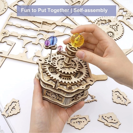 - 3D mechanische houten puzzel met muziekdoos (orrery)
