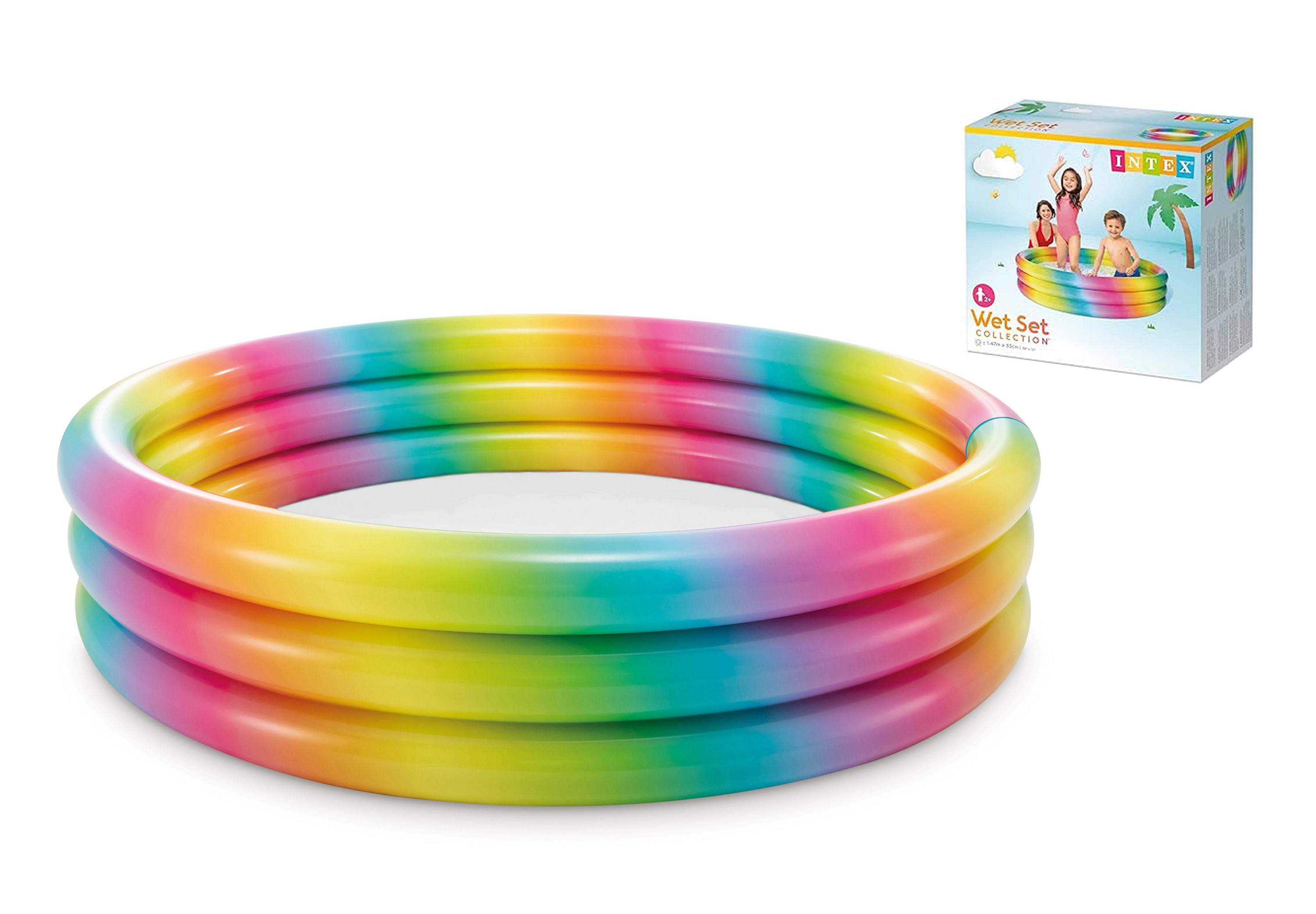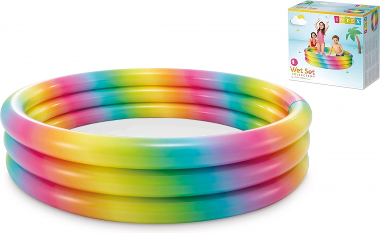 Dit kleurrijke zwembad valt op door zijn aantrekkelijke regenboogkleuren, die kinderen betoveren en elke tuin een vrolijke sfeer geven.
