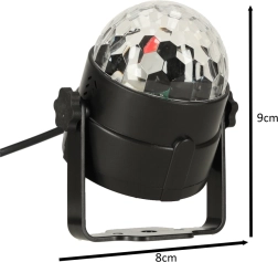 De disco bol gebruikt 3x1W LED die een breed scala aan kleureffecten creëert.