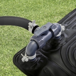 Dankzij de mogelijkheid om meerdere matten te koppelen pas je de verwarming aan het volume van je zwembad aan. De geïntegreerde bypass-klep maakt het mogelijk de doorstroming te regelen of de mat tijdelijk uit het circuit te halen. De mat ondersteunt slangen van Ø 32 mm en met de meegeleverde adapters ook Ø 38 mm. Voor de beste prestaties gebruik je een filterpomp met een doorstroming van 2006–5678 l/u.