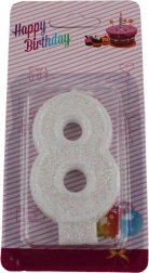Elegante verjaardagskaars in de vorm van het cijfer 9 met subtiele glitter is de perfecte keuze voor het bijzondere moment van het uitblazen van de wens. Dankzij de strakke witte uitvoering en de glitters past hij uitstekend bij verschillende stijlen taarten en decoraties.