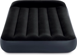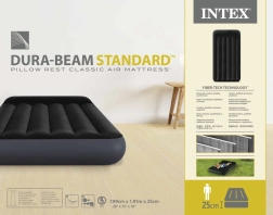 Dit opblaasbare matras in de maat Standard Twin (99 × 191 × 25 cm) is een ideale oplossing voor tijdelijk slapen thuis en onderweg. Het bovenste zachte suède-achtige oppervlak voelt prettig aan en helpt het hoeslaken op zijn plaats te houden, terwijl de verhoogde hoofdzijde natuurlijke steun biedt aan hoofd en nek.