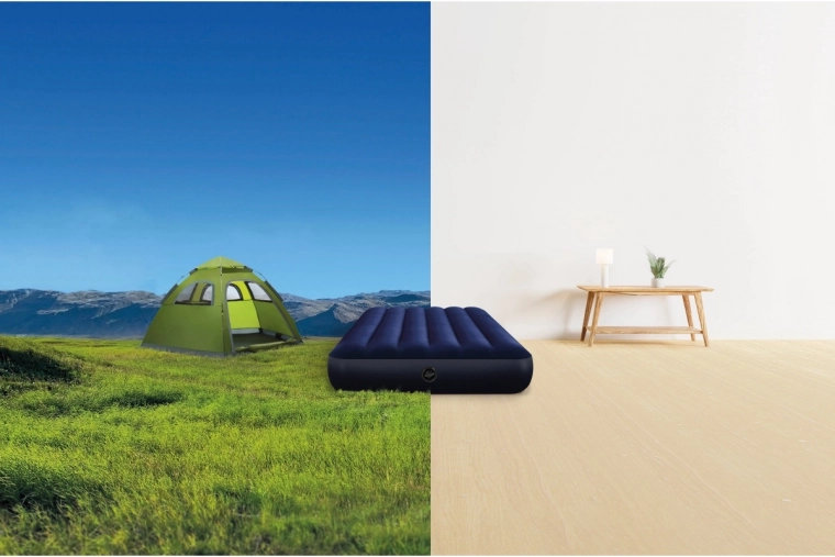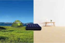 De ergonomische interne structuur ondersteunt een juiste ruguitlijning – horizontaal bij slapen op de zij en de natuurlijke “dubbele S” bij rug‑ of buikligging. Het luchtbed is geschikt als logeerbed, voor de camping en voor op reis.