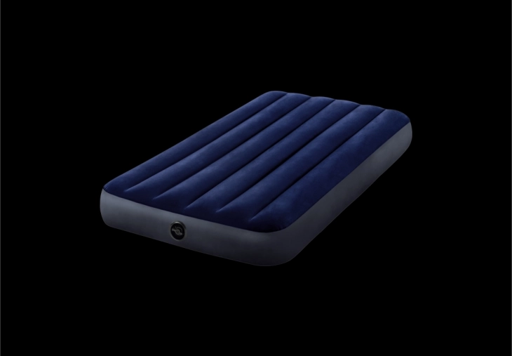 Praktisch opblaasbaar luchtbed voor één persoon met afmetingen 191 × 99 × 25 cm van het merk INTEX, ideaal voor thuisgebruik en reizen. Duurzaam PVC met een fluwelen velourslaag aan de bovenkant zorgt voor een aangenaam gevoel en betere grip van het hoeslaken, terwijl de Dura‑Beam Fiber‑technologie stabiele ondersteuning en een lange levensduur biedt. Inclusief reparatiepatch.