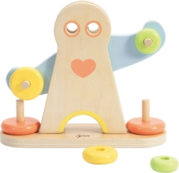 Kinderen schuiven ringen over de armen van het figuurtje en zien hoe het evenwicht verandert. Zo begrijpen ze op natuurlijke wijze het verschil tussen licht en zwaar en oefenen ze logisch denken.