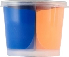 De praktische indeling van het bekertje zorgt ervoor dat twee opvallende kleuren direct klaar zijn om te vormen en te mengen – zonder rommel en met overzicht.