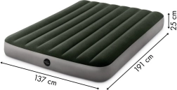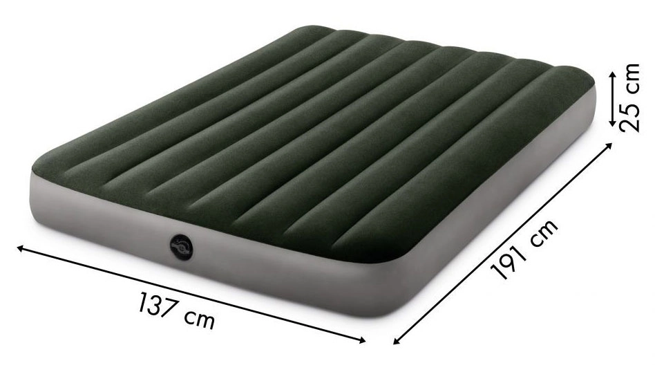 Het opblaasbare luchtbed van Intex met de afmetingen 191x137x25 cm is ideaal voor twee personen. Het is gemaakt van stevig PVC-materiaal en de bovenkant is bedekt met waterbestendig veloursmateriaal dat aangenaam aanvoelt.