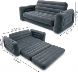 Dit innovatieve meubelstuk van het merk Intex kenmerkt zich door een eenvoudig ontwerp en praktisch gebruik voor thuis of op vakantie. Met een afmeting van 231x203x66 cm biedt het niet alleen ruimte voor comfortabel zitten, maar dankzij de constructie ook voor een Queen-formaat slaapoptie. Het is bedekt met een zachte fluwelen velour die comfort biedt.