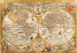 De puzzel toont een complex en esthetisch prachtig ontwerp van een oude wereldkaart, ideaal voor liefhebbers van cartografie.