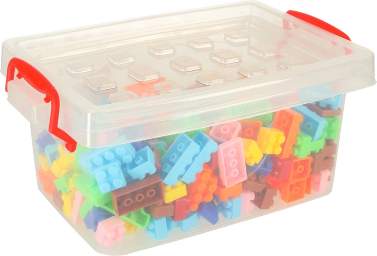 De transparante doos met stevig deksel en sluitclips houdt alle blokken bij elkaar en altijd binnen handbereik – thuis en onderweg.