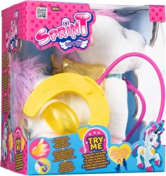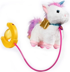 De schattige interactieve eenhoorn Lucky maakt elk kind blij – pak gewoon het lijntje en de knuffel loopt met je mee. Hij heeft stabiele pootjes met speciale bolletjes voor een zekere stand, ook als jongere kinderen spelen. De geïntegreerde luchtpomp in de lijn blaast de oren en staart op, en een door beweging geactiveerde geluidschip zorgt voor nog meer speelplezier.