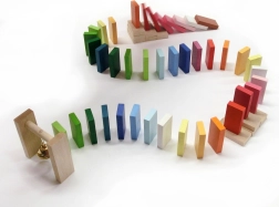Breng eindeloos plezier in huis met de Detoa Dominobaan met bel! Deze creatieve set, bestaande uit 95 kleurrijke stenen, is ideaal voor alle kleine bouwers. Het creëren van eigen banen en het volgen van de effecten van het vallende domino stimuleert geduld en logisch denken bij kinderen.