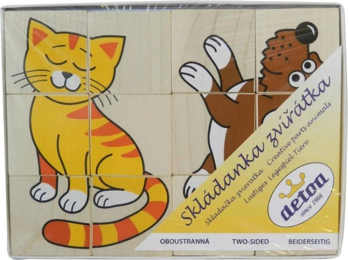 De dierenpuzzel biedt geweldig plezier voor kinderen die kunnen spelen met 12 houten blokken die aan beide zijden bedrukt zijn. Met deze blokken kunnen tot 5 verschillende dieren worden samengesteld, wat niet alleen de creativiteit bevordert, maar ook het logisch nadenken. Kinderen moeten nadenken welk blok bij welk dier hoort, wat hun onderscheidingsvermogen ontwikkelt. De puzzel is gemaakt in Tsjechië en voldoet aan alle EU-veiligheidsnormen.