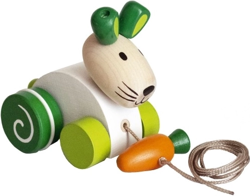 Dit houten trekonijn motiveert kinderen om te lopen en actief te bewegen. Dankzij de gladde afwerking en robuuste constructie is het speelgoed veilig en prettig vast te houden. De wortel aan het touwtje voegt een speels element toe en stimuleert de verbeelding.