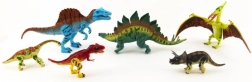 Deze kleurrijke dinosaurusset biedt kinderen realistische vormen en oppervlakdetails die nieuwsgierigheid en spel prikkelen. De verschillende soorten met karakteristieke kenmerken (hoorns, kammen, lange halzen) ondersteunen het herkennen van dieren uit het Krijt en fantasierijk verhalen vertellen.