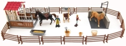 Ontdek de leuke wereld van paarden met een realistische set waarmee kinderen hun eigen boerderij kunnen creëren en hun fantasie ontwikkelen. Dankzij de gedetailleerde accessoires en beweegbare figuren ervaren kinderen de dagelijkse verzorging van paarden – van poetsen en douchen tot opzadelen en voeren.