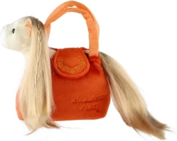 Deze oranje pluche handtas verbergt een schattig paardje binnenin, dat je op elk moment eruit kunt halen en weer terug kunt stoppen. De lange, zachte manen nodigen uit om te kammen en vlechtjes te maken, wat de fijne motoriek en creativiteit stimuleert.