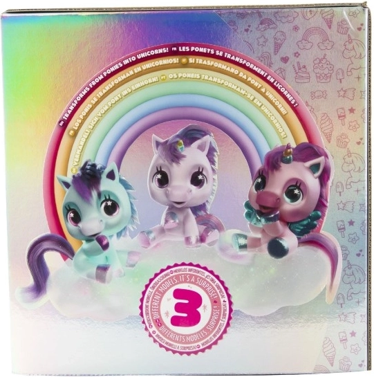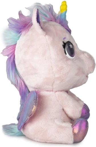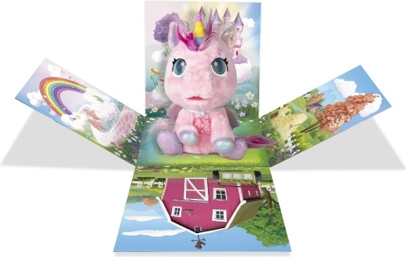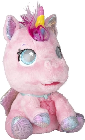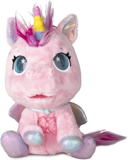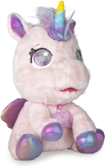 Interactieve pluche pony die je nieuwe favoriete vriendje wordt. Reageert op aanraking en zorg met meer dan 30 geluiden en acties – van vrolijk gehinnik tot zacht neuriën. Dankzij de geleidelijke transformatie in drie magische fasen zie je hoe de kleurrijke hoorn groeit en de pony verandert in een prachtige eenhoorn.