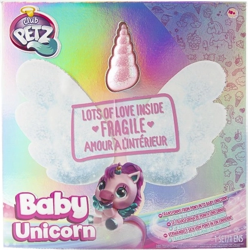 De set bevat 9 thematische accessoires voor fantasierijk spel: een voedingsflesje, een kam, regenboogvleugels, speldjes, stickers, een hangertje en een adoptiecertificaat. Er zijn 3 kleurvarianten (wit, roze, blauw), zodat elke kleine tovenaar of tovenares iets kan kiezen.