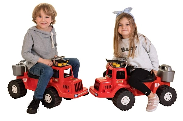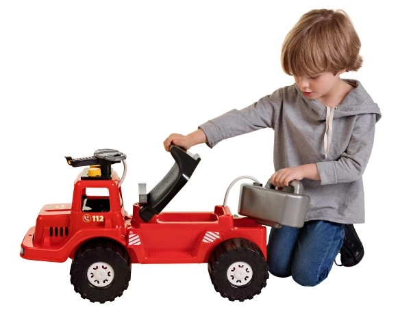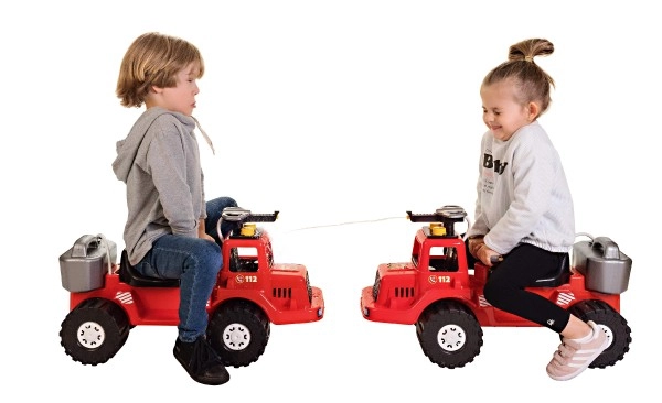 Dankzij het lage zwaartepunt, de brede wielen en de ergonomische handgreep is het rijden stabiel en comfortabel. De loopauto ondersteunt de ontwikkeling van de grove motoriek, coördinatie en het zelfvertrouwen van het kind. Realistische details, het nummer 112 en “FIRE DEPARTMENT”-opdrukken onderstrepen de authentieke uitstraling.