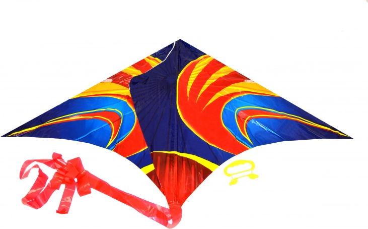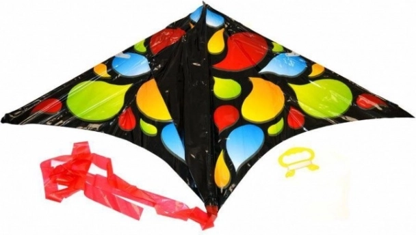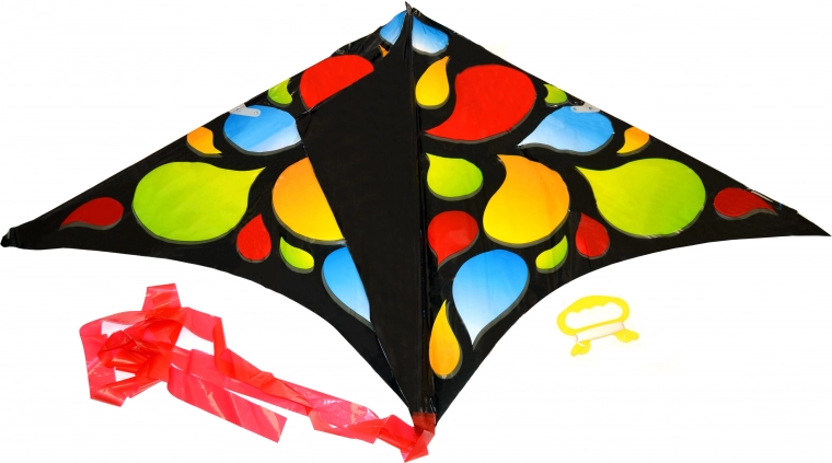 Vlieger met afmetingen 61 x 114 cm is een leuk speeltje voor kinderen en volwassenen, verkrijgbaar in twee kleuren: zwart en blauw.