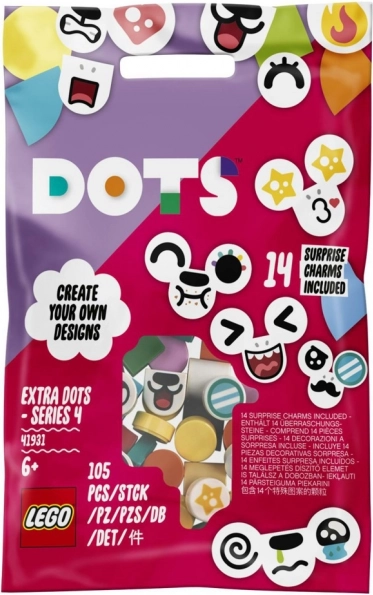Met de LEGO DOTS accessoires – serie 4 kunnen kinderen en knutselfans hun armbanden, kamerdecoraties of tassenhangers precies afstemmen op hun stemming. De set biedt een breed palet aan kleuren en leuke prints, zodat elk ontwerp uniek is.