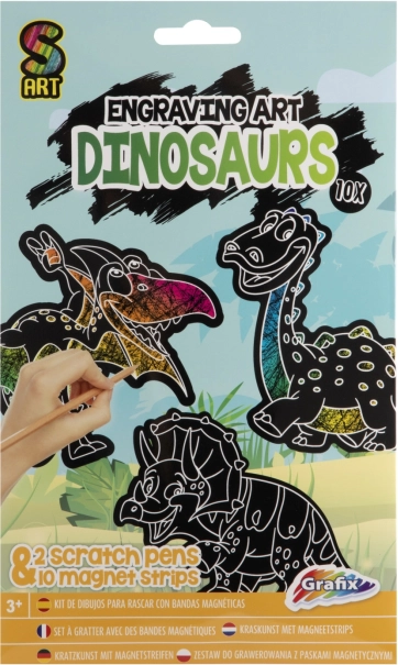 Ontdek een creatieve set voor kinderen en volwassenen: krasmagneten met motieven van feeën en dinosaurussen. In de verpakking vind je 10 magneten en 2 kraspennetjes voor eenvoudig knutselen. Bevestig de afgewerkte magneten op elk metalen oppervlak – koelkast, magneetbord of kastje.