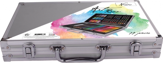 Ontdek een wereld van kleur en creativiteit met onze Kunstkoffer met metalen behuizing. Deze set bevat 79 zorgvuldig geselecteerde kunsttools, waaronder waterverf, kleurpotloden, penselen, een gum en een puntenslijper, die voldoen aan de behoeften van zowel beginnende als gevorderde kunstenaars. Organisatie en draagbaarheid staan centraal: dankzij de metalen behuizing met robuuste sluitingen en een comfortabel handvat is je materiaal altijd goed opgeborgen.