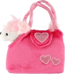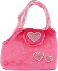 De vrolijke roze handtas met hartjes en het zachte hondje met strikje zullen elke kleine dierenliefhebster blij maken.