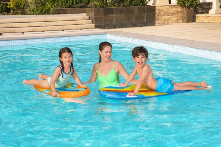 Bezorg kinderen eindeloos zomers waterplezier. Het opblaasbare board in de vorm van een surfplank biedt zekerheid en comfort tijdens spel en de eerste zwemproberen. Dankzij twee ergonomische handgrepen houden kinderen zich makkelijk vast en voelen zij zich veiliger in het water.