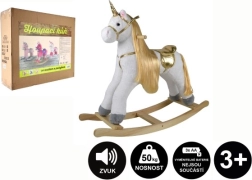 Ontdek de magie van speels schommelen met de stijlvol wit-gouden eenhoorn, die niet alleen prachtig oogt maar ook vol interactieve fun zit. Na het indrukken van het ene oortje hinnikt de eenhoorn en beweegt hij zijn staart; na het indrukken van het andere oortje hoor je het klateren van hoeven in draf en zwaait de staart opnieuw. De knuffel helpt kinderen op natuurlijke wijze balans en motoriek te trainen en ondersteunt de fantasie.