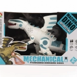 De verpakking bevat een dinosaurusfiguur met een lengte van 35 cm. De dinosaurus heeft 2x AA-batterijen nodig (niet inbegrepen), wat betekent dat het speelgoed eenvoudig te bedienen is zonder afhankelijk te zijn van een stopcontact.