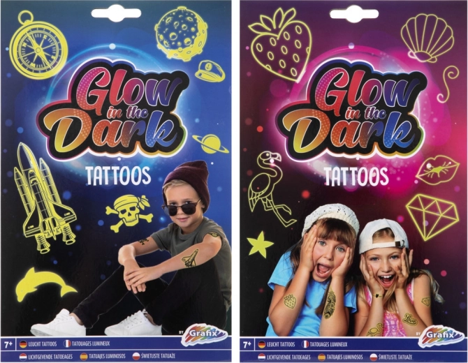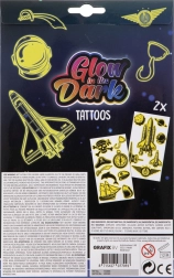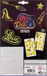 Deze set lichtgevende tatoeages is ideaal voor meisjes die hun stijl wat sprankeling willen geven. Geniet van de verschillende motieven die in de verpakking zitten, met twee vellen tatoeages. Knip eenvoudigweg uit, breng aan op de huid, maak vochtig met een spons en klaar! Het gebruik is snel en leuk.
