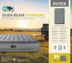 Opblaasbaar bed met afmetingen 152 cm x 203 cm x 30 cm. Maximale draagkracht 272 kg. Opblaastijd is 5,5 minuten. Eenvoudig opblazen, leeglaten en opbergen. Ingebouwde elektrische pomp.