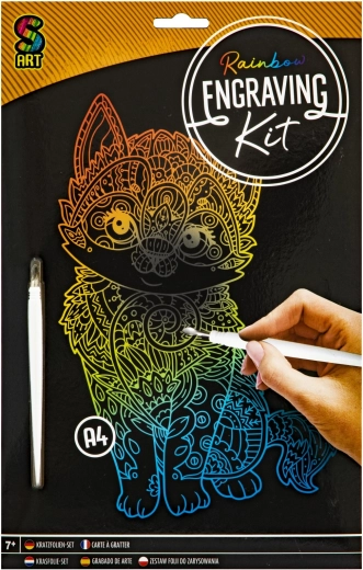 De zwarte deklaag verandert tijdens het krassen in levendige regenboogkleuren. Je maakt een gedetailleerd kattenmotief zonder verf of lijm – de meegeleverde pen is voldoende.