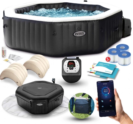 - Smart bediening via de Intex Link app – temperatuur, timer, bubbels