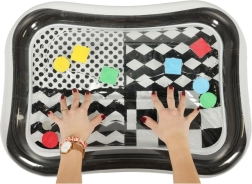 De contrast watermat is ontworpen voor sensorische stimulatie van jonge kinderen. Gemaakt van hoogwaardig materiaal en voorzien van een zwart-wit patroon, biedt de mat visuele stimulatie terwijl de gekleurde vormen binnenin de vloeistof interactieve plezier garanderen. Kinderen kunnen de vormen die drijven in het water volgen, wat hen motiveert om te spelen en zich te concentreren.