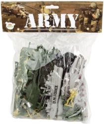 Ongeveer 71 soldaatjes in twee kleuren, aangevuld met schepen, tanks, helikopters en andere voertuigen – ideaal om je eigen gevechtsscènes te creëren.