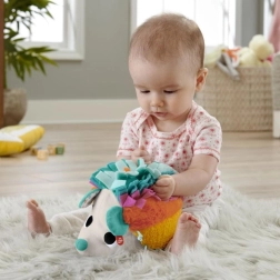 Het knisperende buikje, het verrassende deuntje binnenin en de piepneus houden de aandacht van je baby vast en ondersteunen het begrip van oorzaak en gevolg.