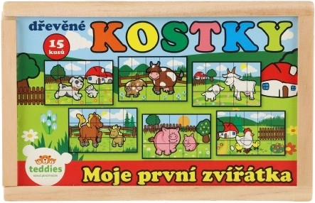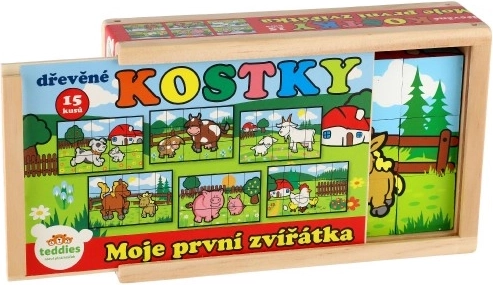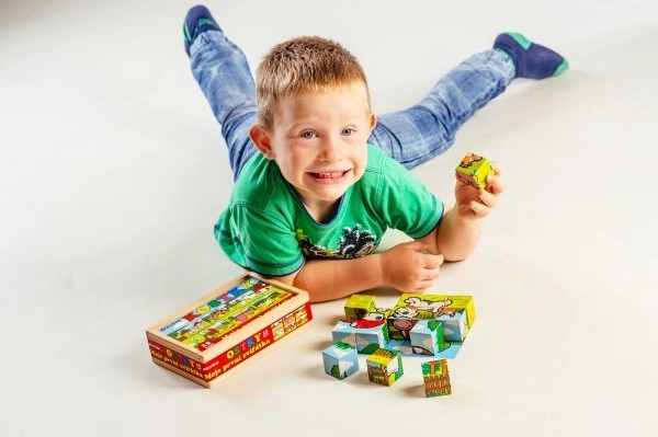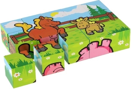 Houten blokken met kleurrijke afbeeldingen van verschillende huisdieren zijn een geweldig hulpmiddel voor de ontwikkeling van kinderen. Bij correct stapelen verschijnt een van de zes afbeeldingen, wat logisch denken en fantasie bij de kleintjes bevordert. Tijdens het bouwen en afbreken van torens begrijpen kinderen het principe van balans en de basis van oorzaak en gevolg.