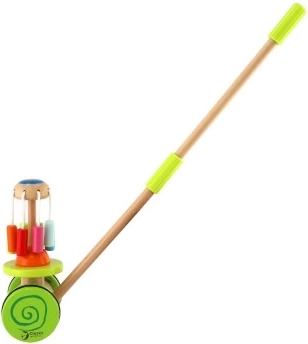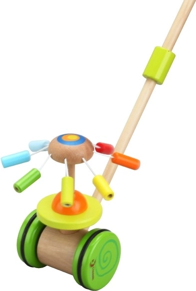 De houten kleurrijke duwwagen Classic World is het ideale speelgoed voor kleine ontdekkers die leren lopen. Deze wagen is uitgerust met een kleurrijke carrousel die draait en prettige geluiden maakt, wat de aandacht van kinderen trekt en hun loopontwikkeling ondersteunt.