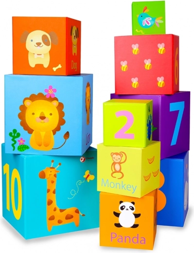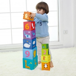 Deze kleurrijke blokken bevatten cijfers, dieren en Engelse woorden, wat helpt bij het leren en ontwikkelen van cognitieve vaardigheden.