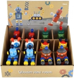 Deze kleurrijke houten robots zijn ideaal voor eerste bouw- en rollenspellen. Dankzij de elastische verbindingen buigen ze gemakkelijk, houden ze poses vast en nodigen ze kinderen uit tot creatief verhalen vertellen. Duurzaam hout en gladde randen zorgen voor veilige en prettige hantering, zelfs voor de allerkleinsten.