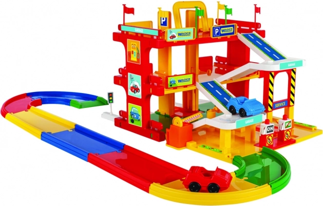 Drie verdiepingen tellende garage met lift, wasstraat en tankstation voor een complete speelervaring.