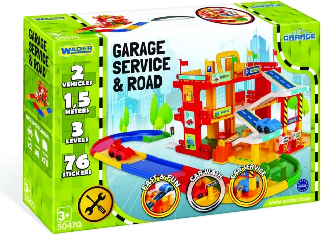 Garage Service uit de Garage serie is een modern ontworpen speelgoed dat een autolift, wasstraat, tankstation, autowerkplaats en drie gedecoreerde niveaus bevat. Het spel stimuleert vooral creatief denken, motorische en manuele vaardigheden van uw kinderen.