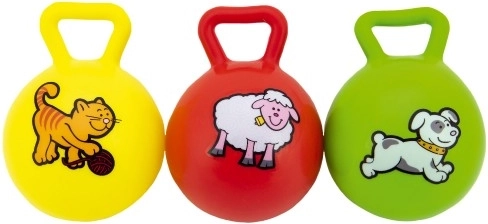 Een kat, hond of schaap op kleurrijke balletjes trekken de aandacht en ondersteunen de visuele waarneming.
