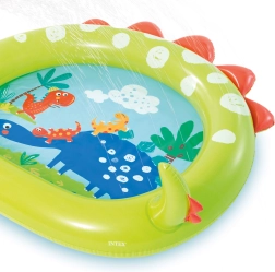 Vrolijk opblaasbaar zwembadje met een fontein en dinosaurusthema is ideaal voor zomers plezier in de tuin. Het zwembad is gemaakt van hoogwaardig PVC-materiaal met afmetingen van 119 x 109 x 66 cm.
